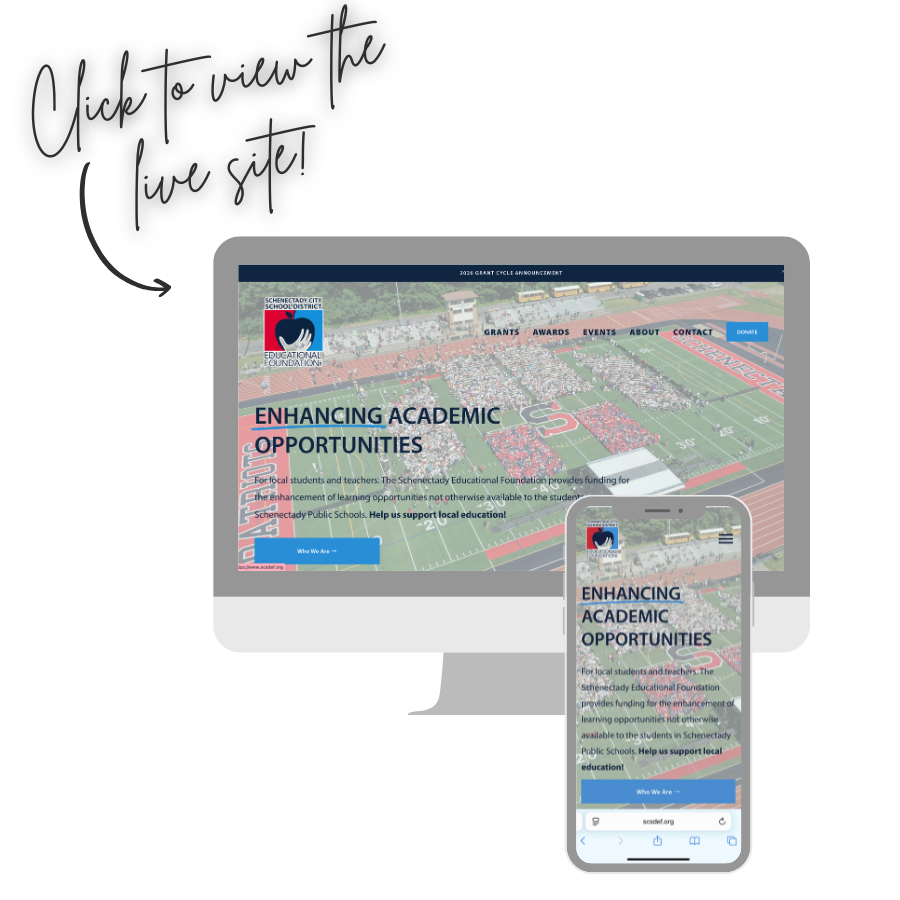 The SCSDEF is a non-profit organization that awards grants for SCSD staff to enhance the education of district students. Grants are used to provide supplemental resources that align with district goals and initiatives. At Combined Concepts Media, we updated the SCSDEF website to create a more concise, user-friendly experience that highlights the foundation’s grants, community impact, and the meaningful work it supports across Schenectady schools.
